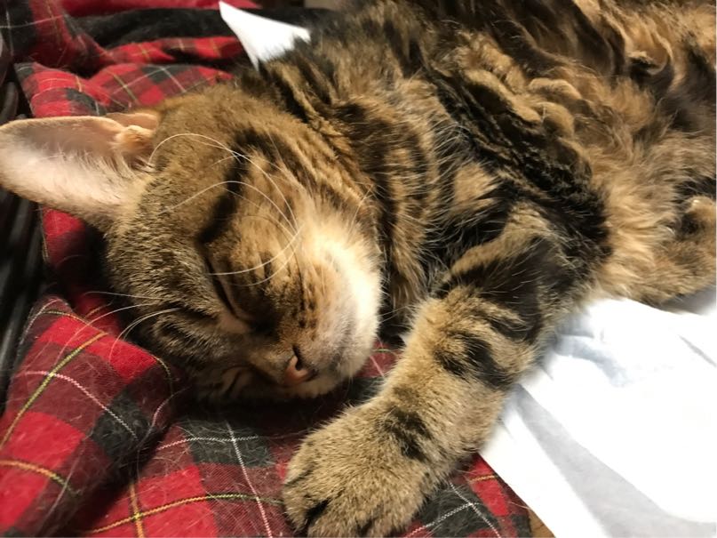なくなった日も夜勤から帰ったら頑張ってました。このまま何もせずに看取れなくて病院に行って注射もしてもらって、先生からは「呼吸もまだ安定してる」と言われて安心してました。 ちょっとずつお水も飲んでいたのですが、私と娘の前で眠るように逝ってしまいました。 さくらがいなくなってまだ2週間、まだいなくなるのに慣れません。つい、いつもいたところを見てしまいます^_^; 遺骨はお家にあります。いつもそばにいて寂しくないように。寂しがりの甘えん坊でしたからね(o^^o) 19年間ありがとうです。