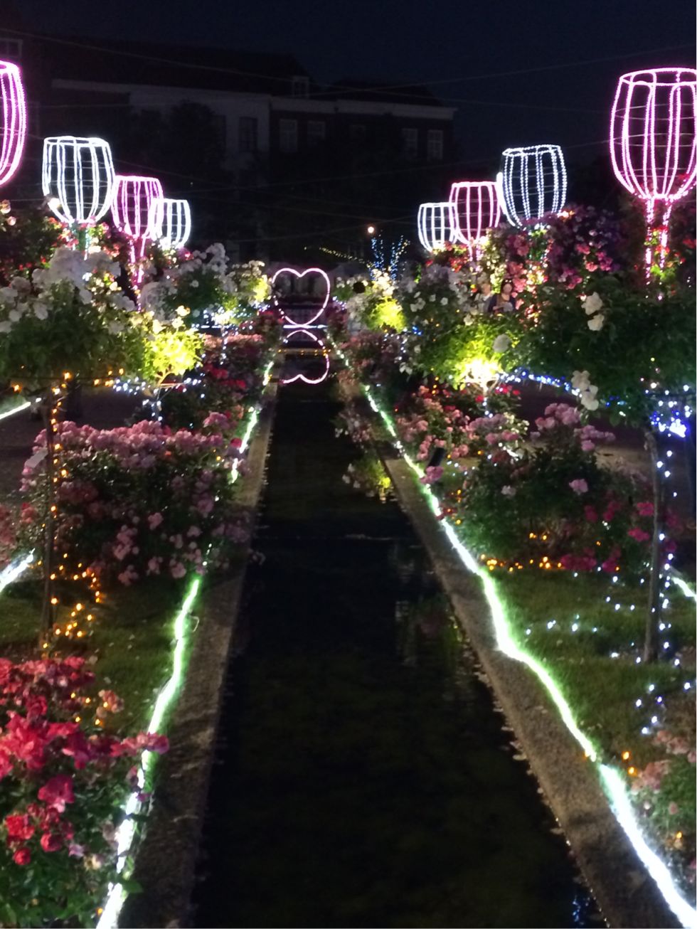 去年と同じ日程にしたのに今年は1週間前から満開で、ちょっとピークは過ぎていました^^;そのかわり、ちょっと人も去年より少ない感じでした^ ^先週から天気が悪そうだったので、どうなるか心配しましたが、前日には降水確率10%、結局天気よすぎでした(>_<) 薔薇はピークは過ぎていましたが、まだまだキレイだったので写真は撮って来ました。まだしゃがんで写真が撮れ無いので枚数は少ないです。でも、8キロ位歩きました。杖持って行ったけど使わなかったし、1階分位の上り下りなら大丈夫になりました。 ライトアップまで見て帰ってきました。次に行くのは来年かなぁ^ ^ ライトアップ、去年とライトの色が変わってました^ ^