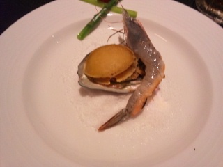 食事会は、女性向きの野菜中心のコースでとっても美味しかったです(^-^)写真は、分かりにくいけど海老に火がついてます。