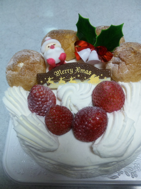 明日から日勤なので、クリスマスケーキは今日食べることにしました。ケーキは、予約してなかったし、昨日いっぱい食べたので、18cmのケーキです。4人分だし。明日から日勤、雪大丈夫かなあ。我が家より職場ので方が山に近いので、雪つもりそうなんだよね。
